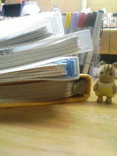 約3、4年前から強奪…ゲフゲフ、戴いたミズナミさんのイラスト、積んだらこんな感じになりました。(比較対象:シルバニアファミリー、シマリスの赤ちゃん)↓