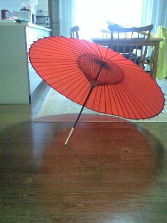 土曜日に雨が降りそうだったので、バイトに行く前に半分冗談で「番傘があったらぴったりなのになー」と言ったら母から「あるよ」との返事が。結納の時の品だそうな。しかも未使用とか。
