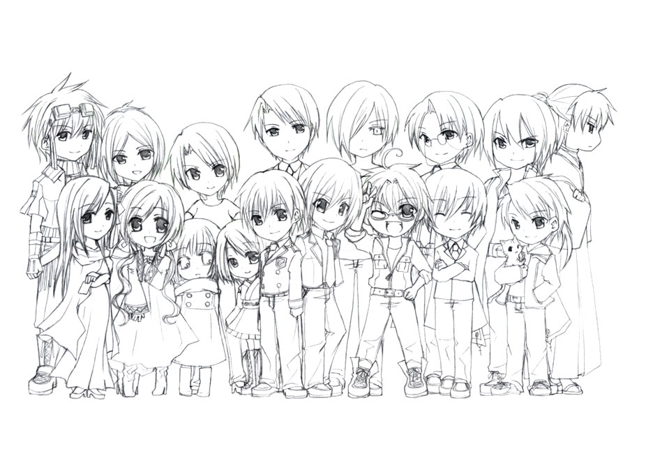キャラクターのサイズを統一して並べるのが苦手というか不可能なので、身長差が見事にバラバラです。