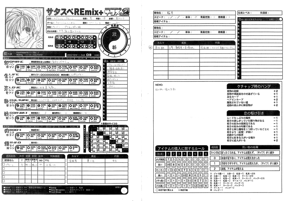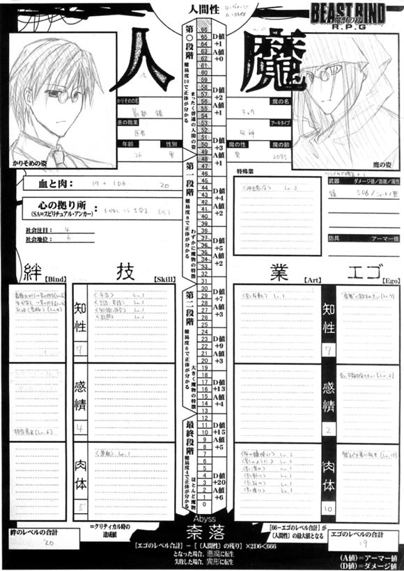 ちなみに、その死神・影都鏡のキャラクターシートはこちら。↓